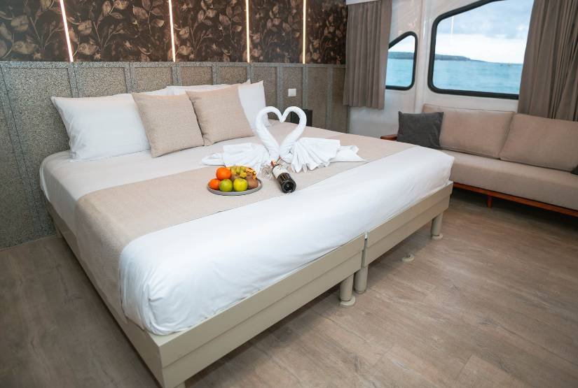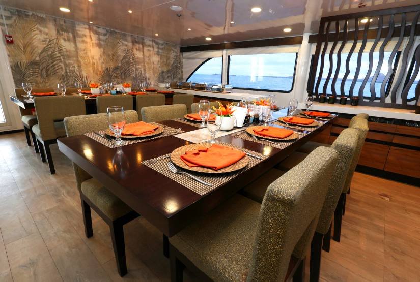 On board this comfortable and new catamaran, we will present you with a wonderful and unforgettable life time! You will have the opportunity to enjoy the best that the Galapagos Islands have to offer, with fun days, a great educational experience, a leisurely excursion with lots of adventure; all of this presented to you with our unmatched high quality service, delicious food, knowledgeable and helpful guides and professional crew.