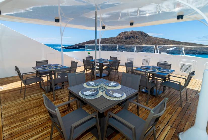 The luxury Yacht Grand Queen Beatriz is a new addition to Galapagos. It promises luxurious and stable cruising. Each cabin is air-conditioned and features panoramic views. Each is well-appointed with toiletries, safe deposits. The vessel features an open outside deck with a lounge area, dining room and Jacuzzi. The yacht also includes kayaks for guests to use. The interiors are complemented by modern, crisp furnishings and decor.