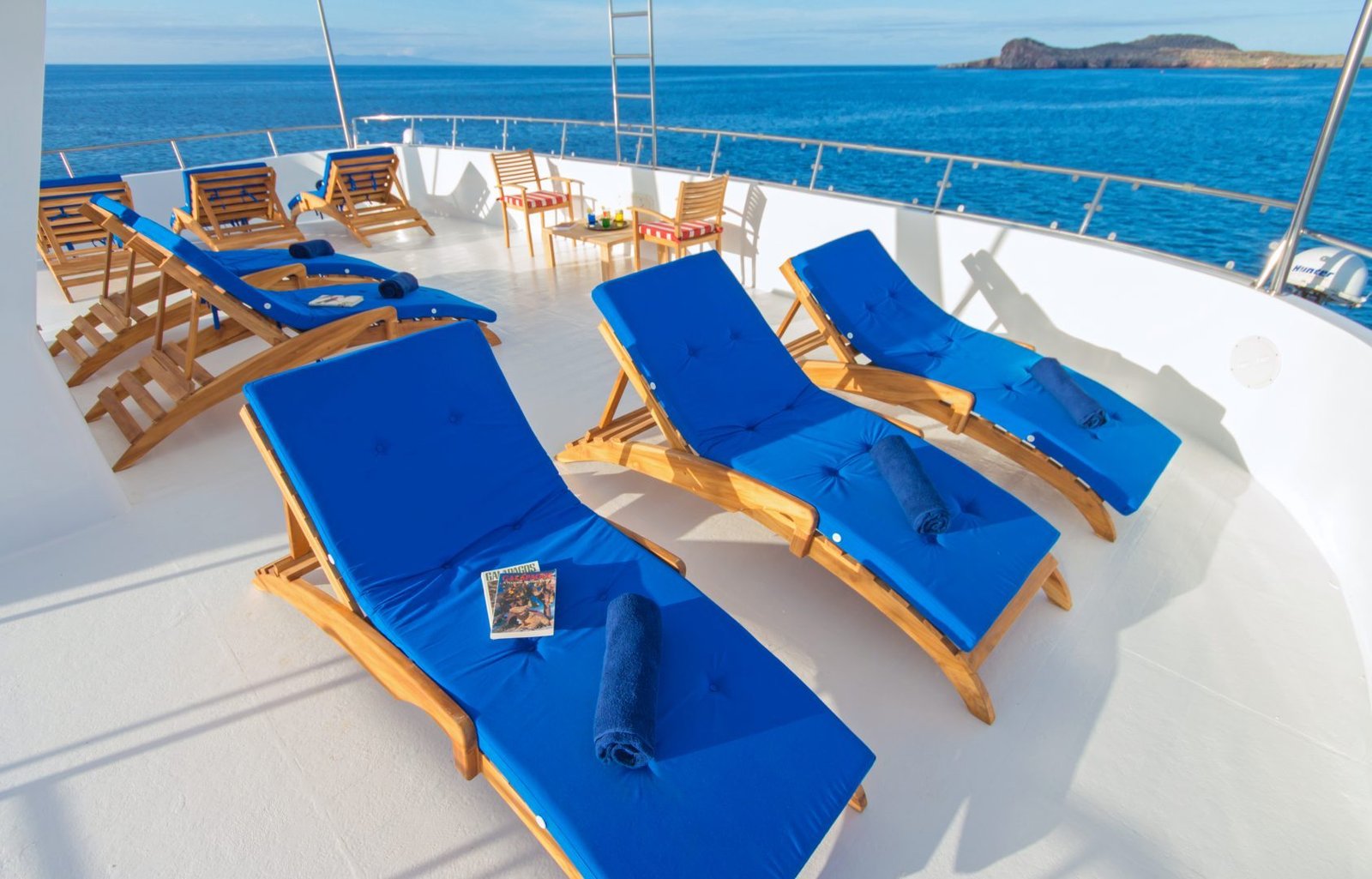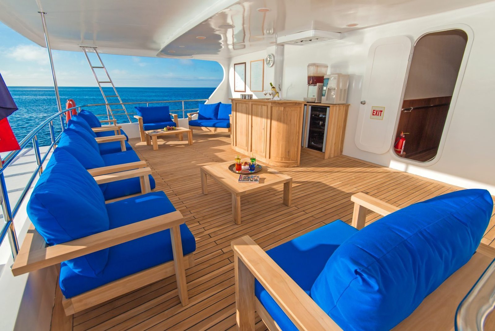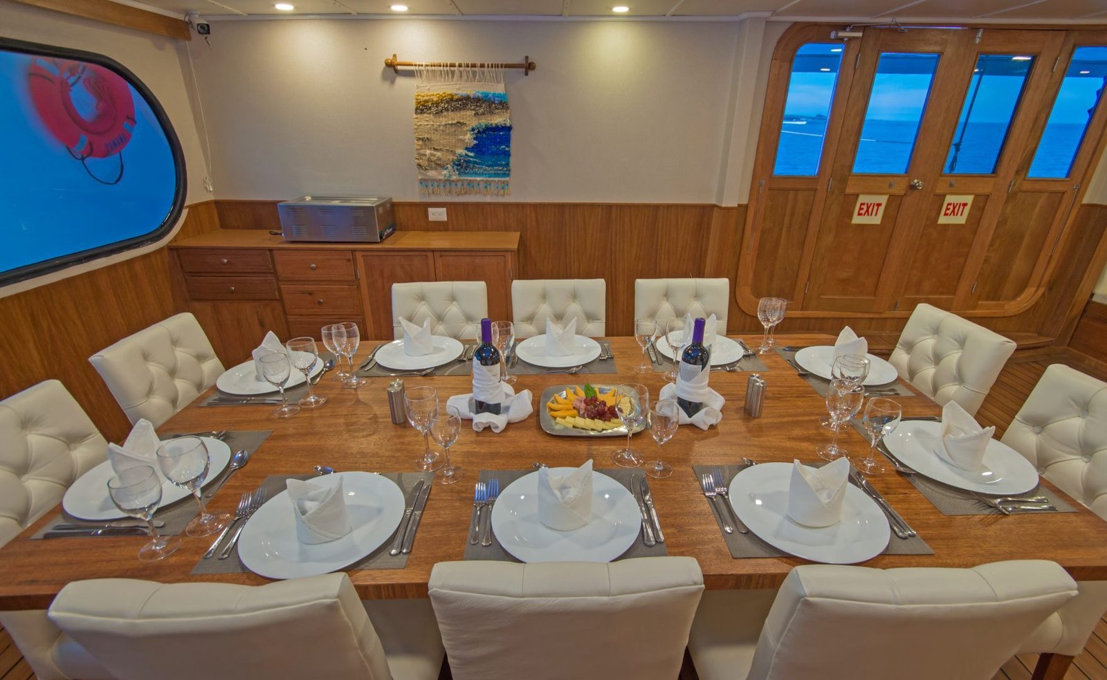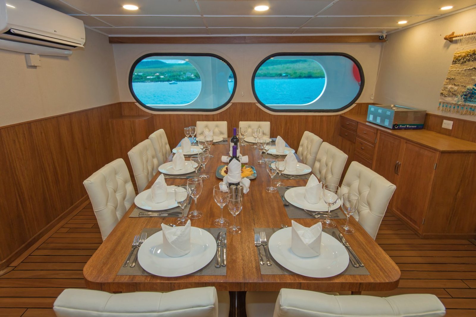 The 8 crew on board includes a bi-lingual naturalist guide certified by the Galapagos National Park and a dedicated chef who will create mouthwatering Ecuadorian and international cuisine.