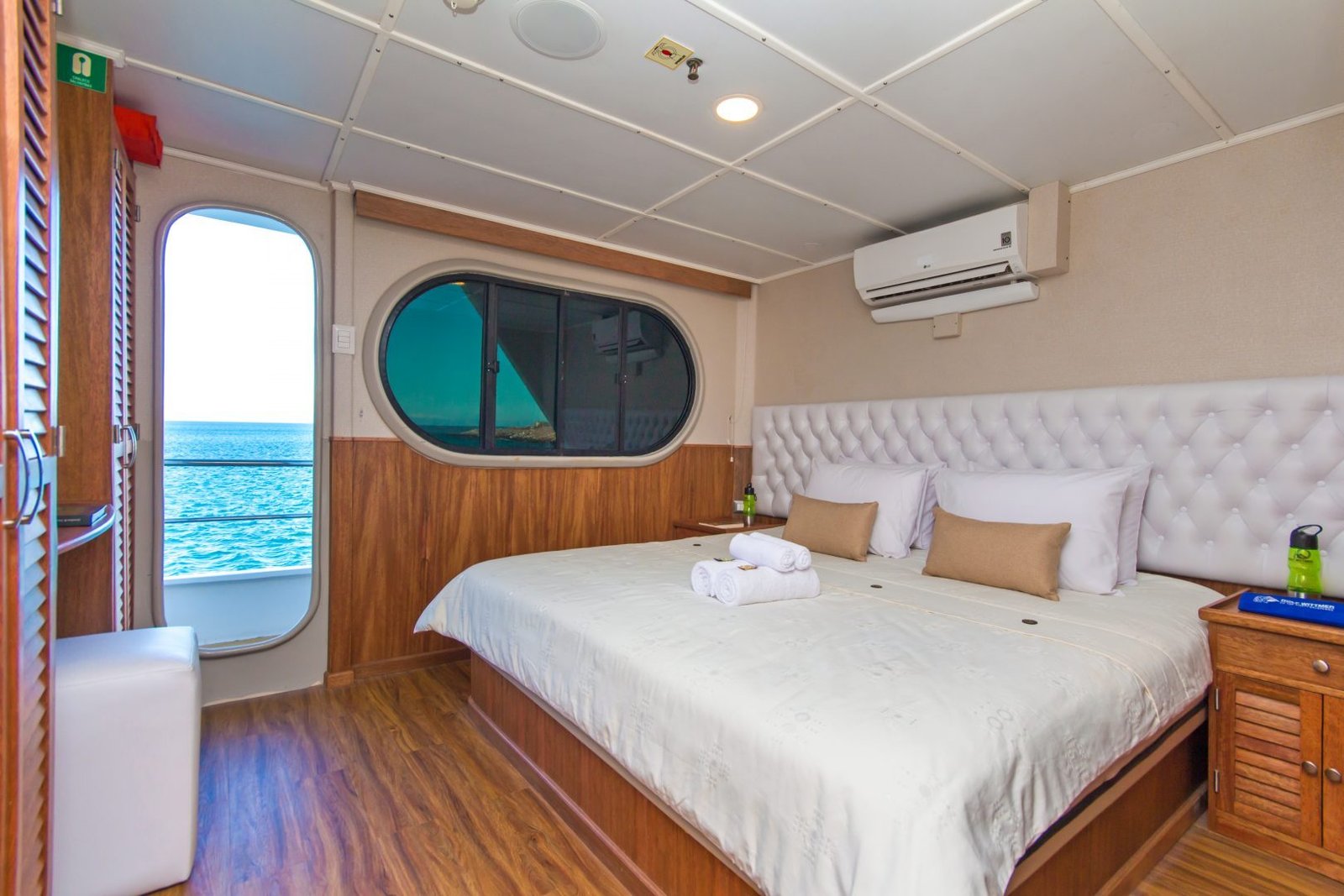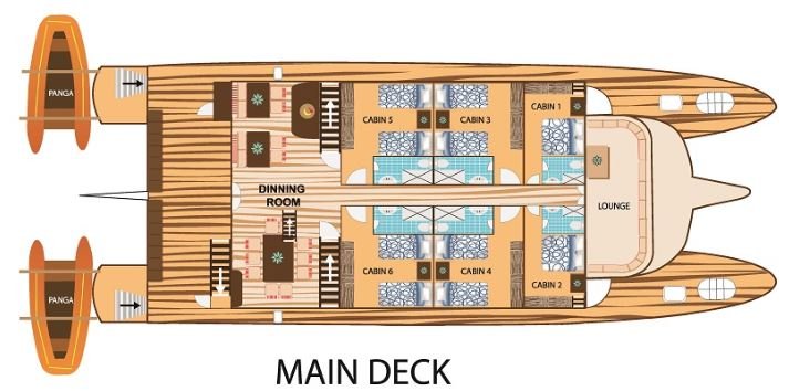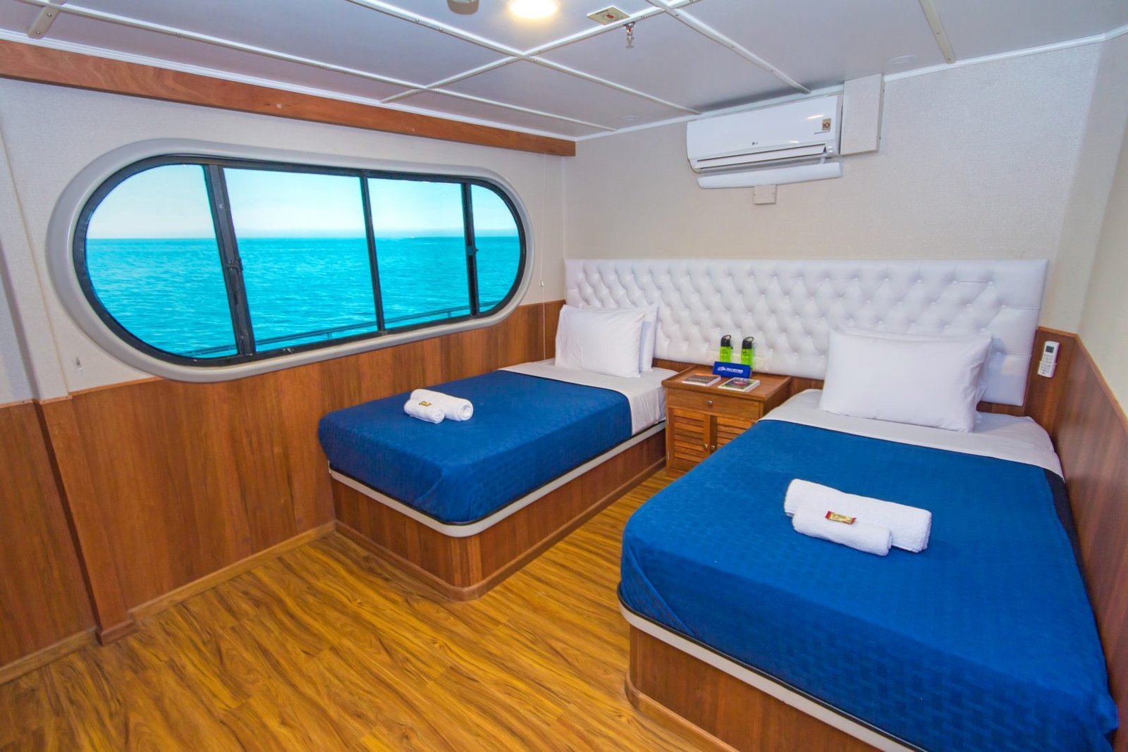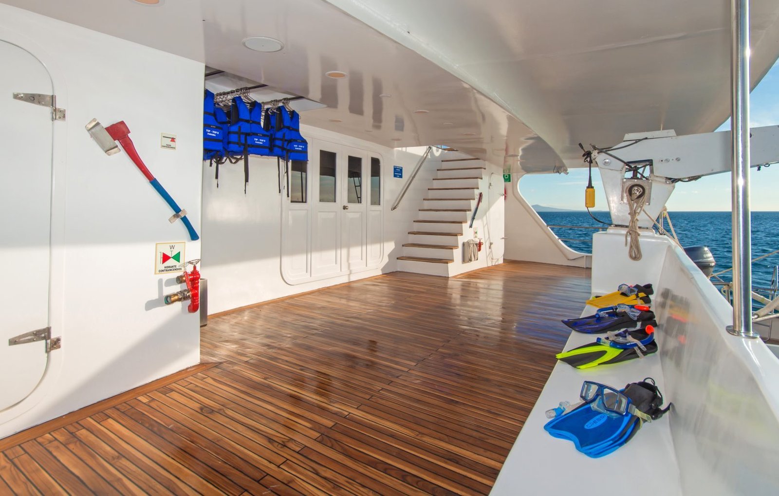 The 8 crew on board includes a bi-lingual naturalist guide certified by the Galapagos National Park and a dedicated chef who will create mouthwatering Ecuadorian and international cuisine.