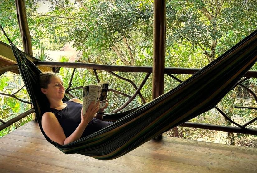 Immerse yourself in the symphony of surrounding sounds and enjoy stunning views of the Napo River.