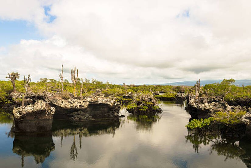 - Tintoreras: The Tintoreras Islets, located a short distance from Puerto Villamil, is home to a great variety of wildlife. Its turquoise, crystalline waters are inhabited by white-tipped reef sharks, Galapagos penguins, marine turtles and sea lions. One of its beaches, surrounded by mangroves is one of the few sites where marine iguanas can reproduce successfully.